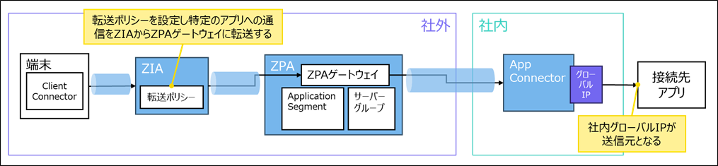 ZIAからの通信をApp Connectorに転送するためのZPAゲートウェイと転送ポリシー設定が必要