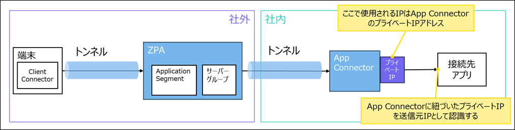 アプリケーションにはApp Connectorに紐づいたプライベートIPが使用される