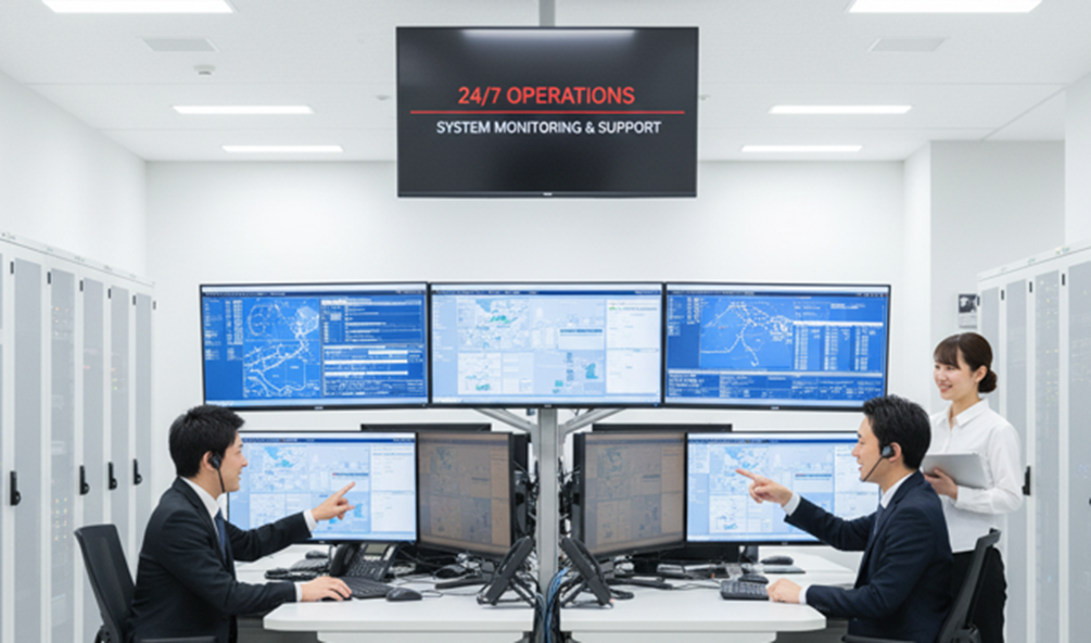 運用監視とは、システムやサービスが安定して稼働し続けるように、常にその状態を見守る仕事です。システムは常に止まらない。だから監視も止まれない。24時間365日体制で、どんなトラブルにも即対応できるように備えています。